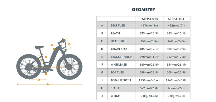 • Weight: Step-over 81.5 lbs, step-thru 79.4 lbs